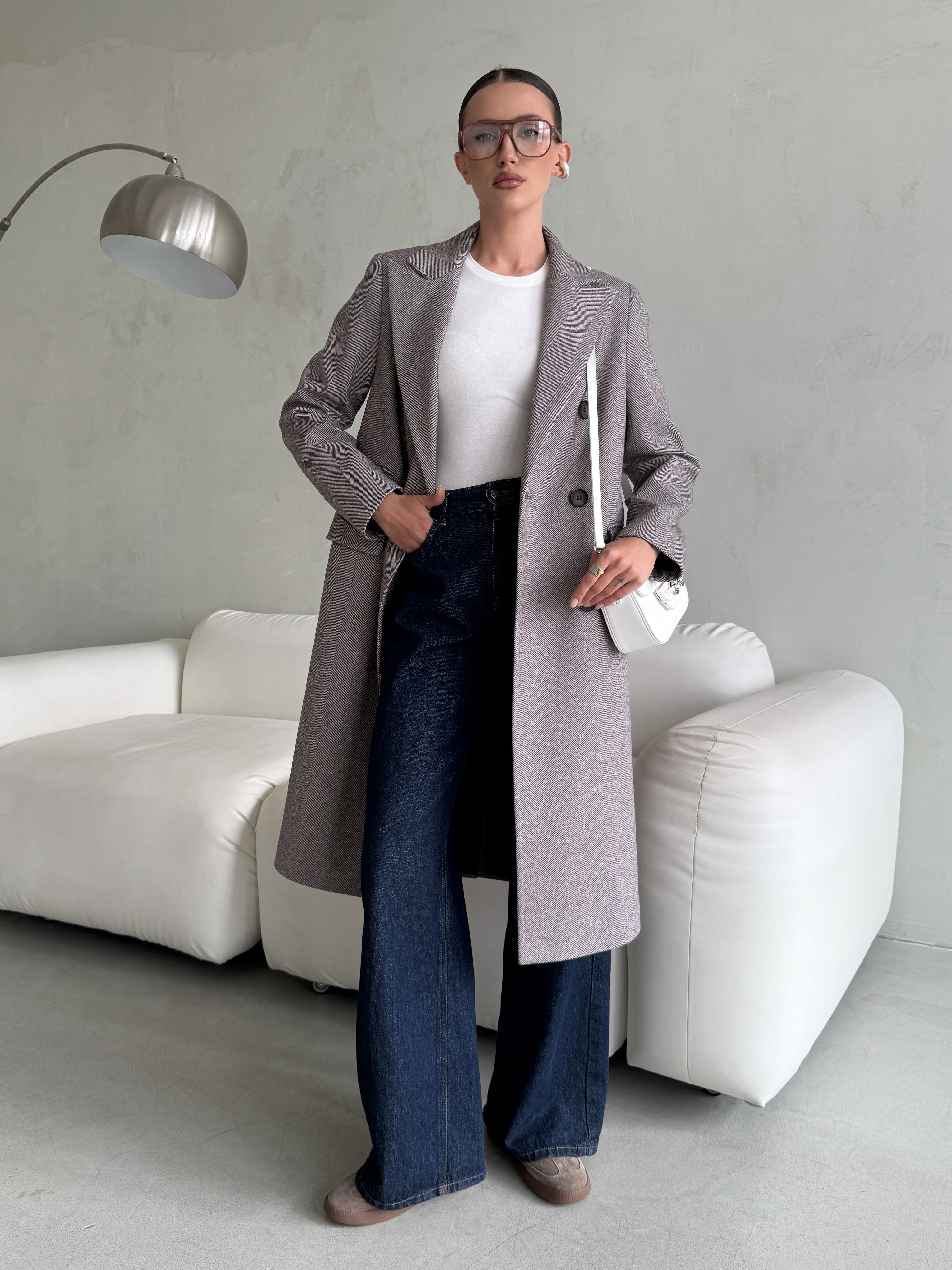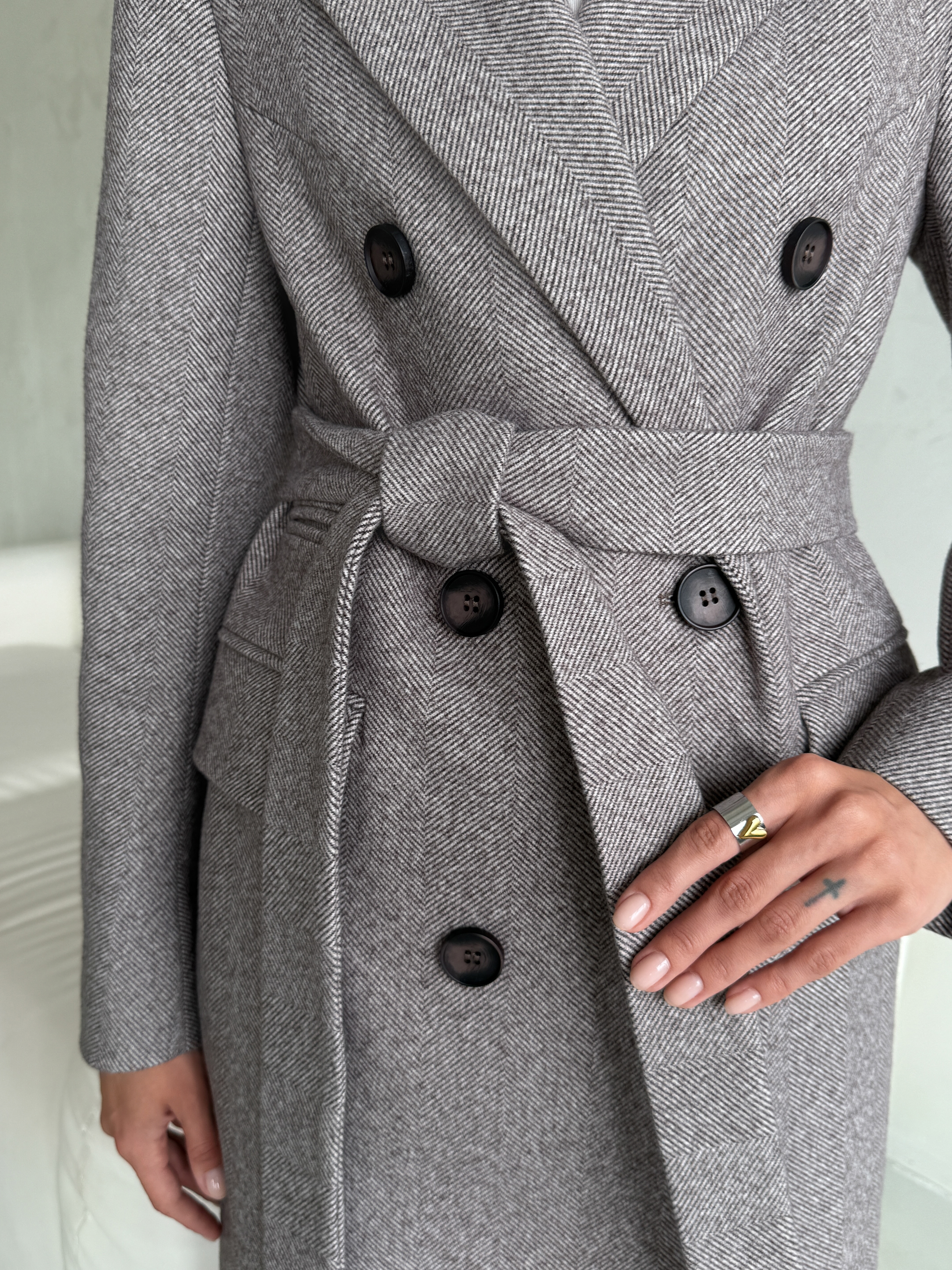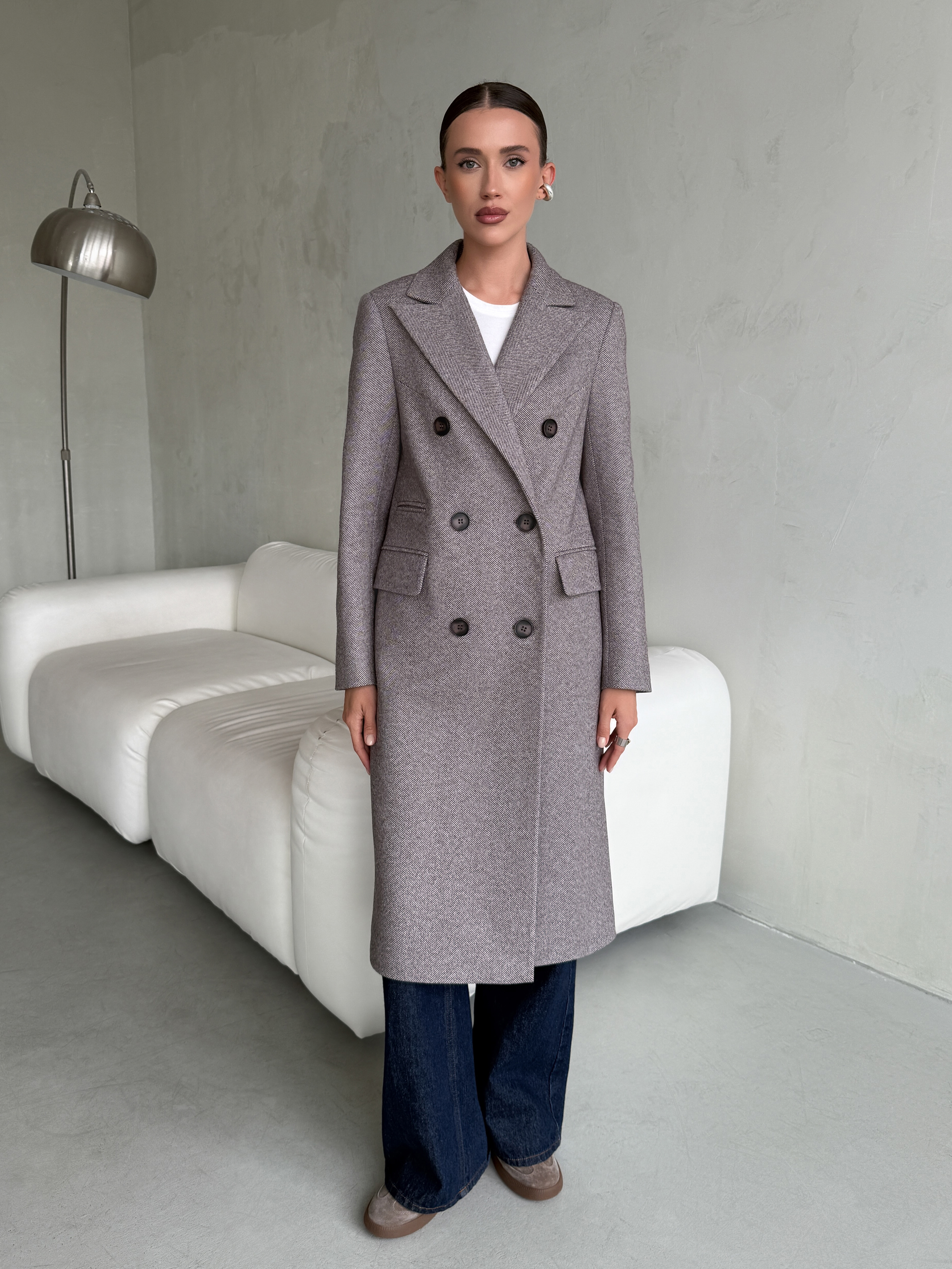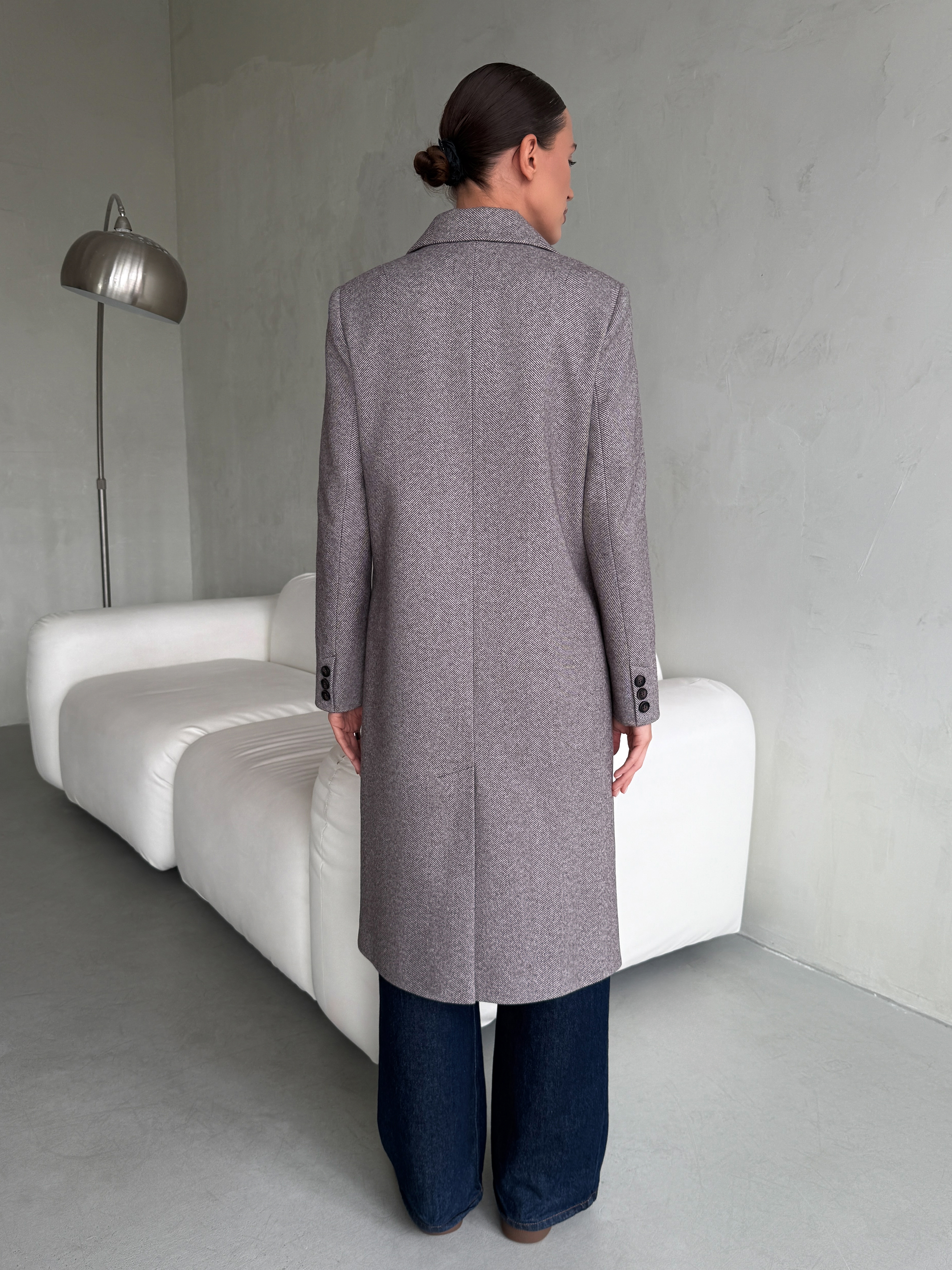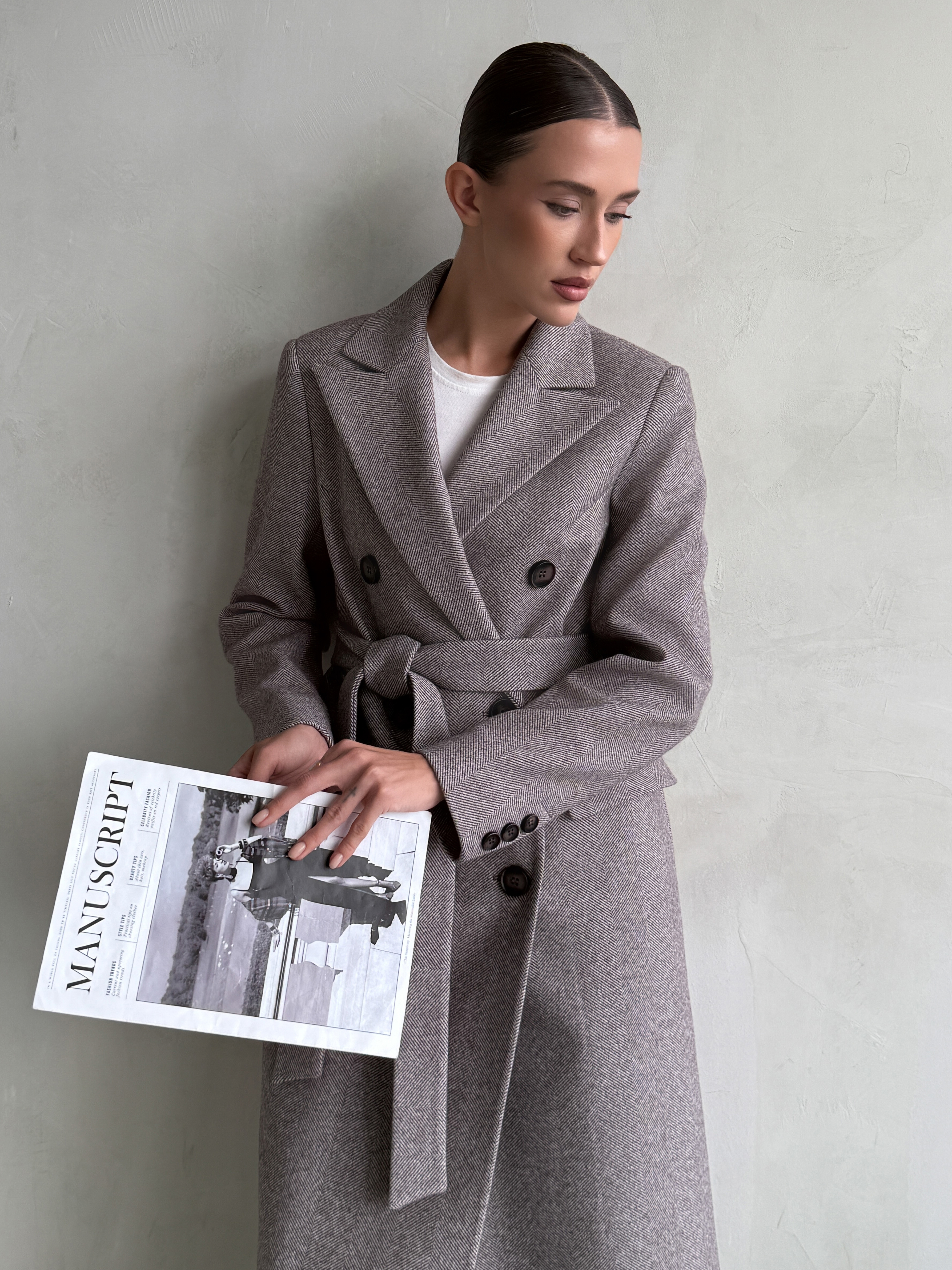 Пальто женское демисезонное 25775 (коричневый/ёлочка)