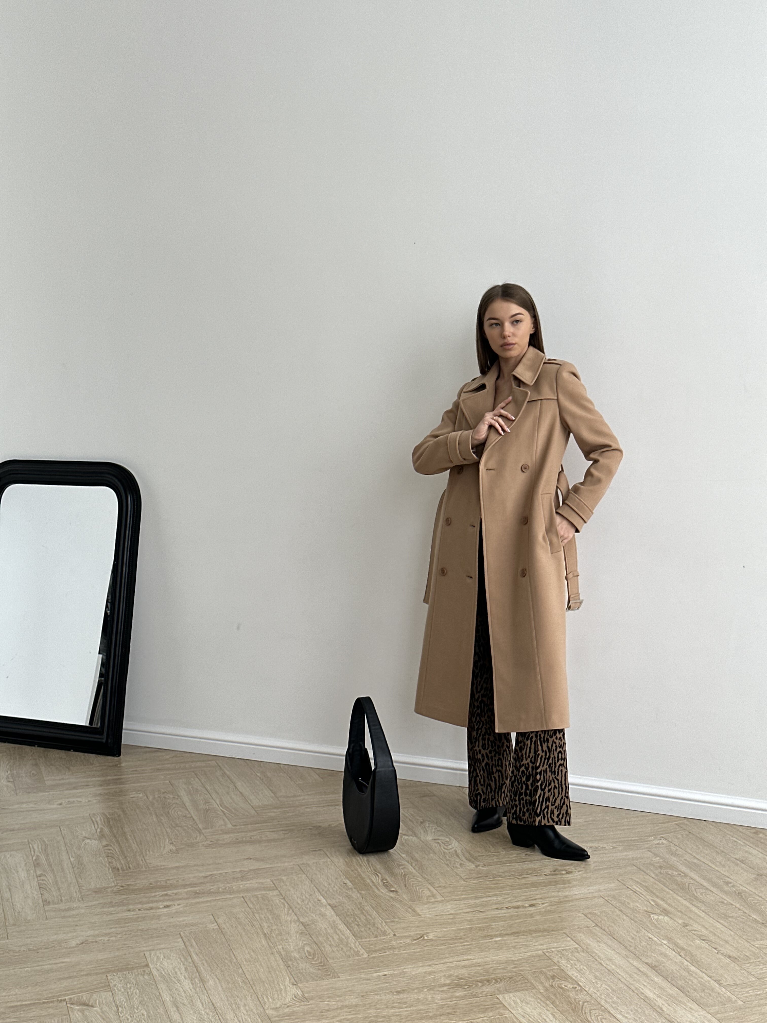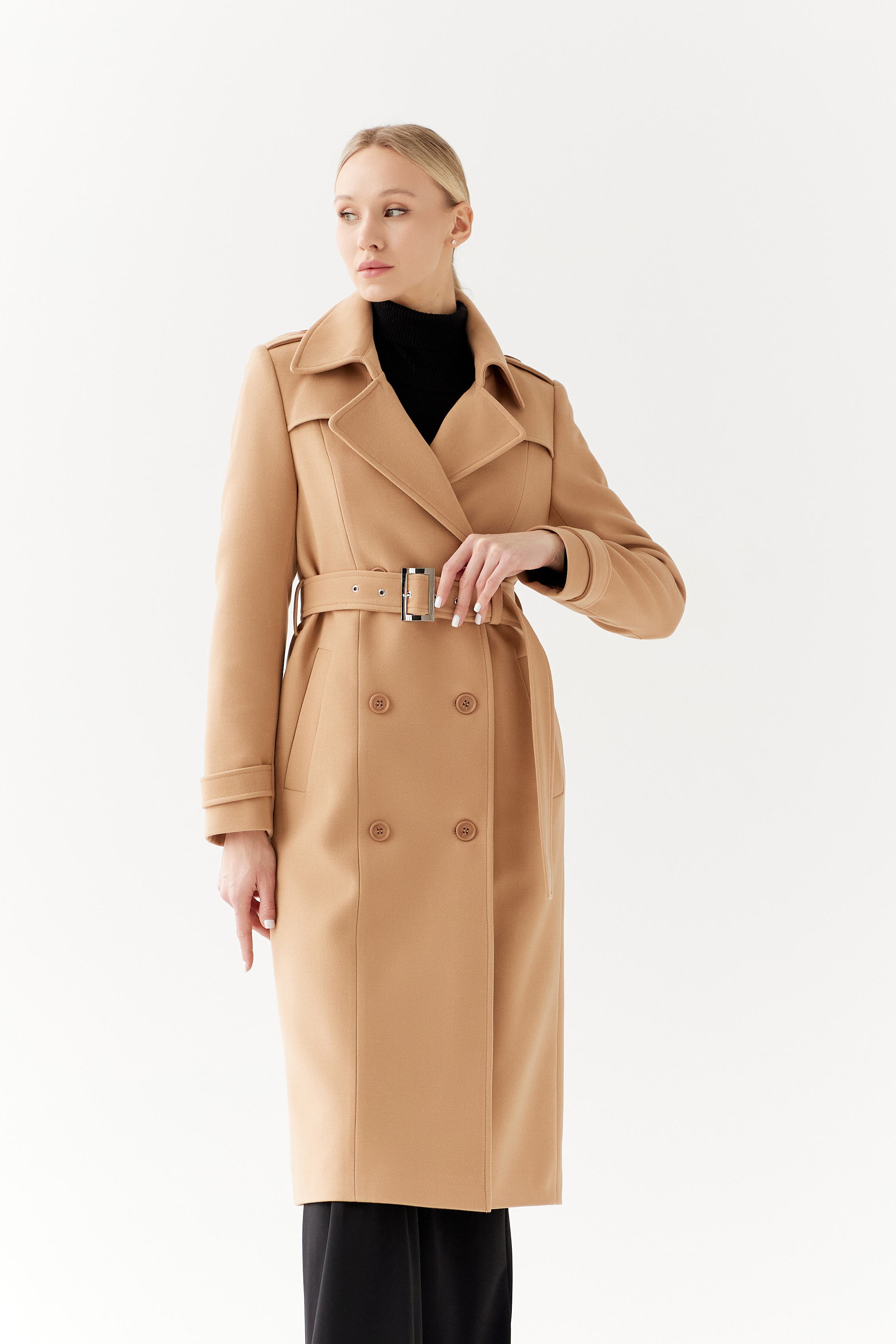 Пальто прямого силуэта, среднего объема.