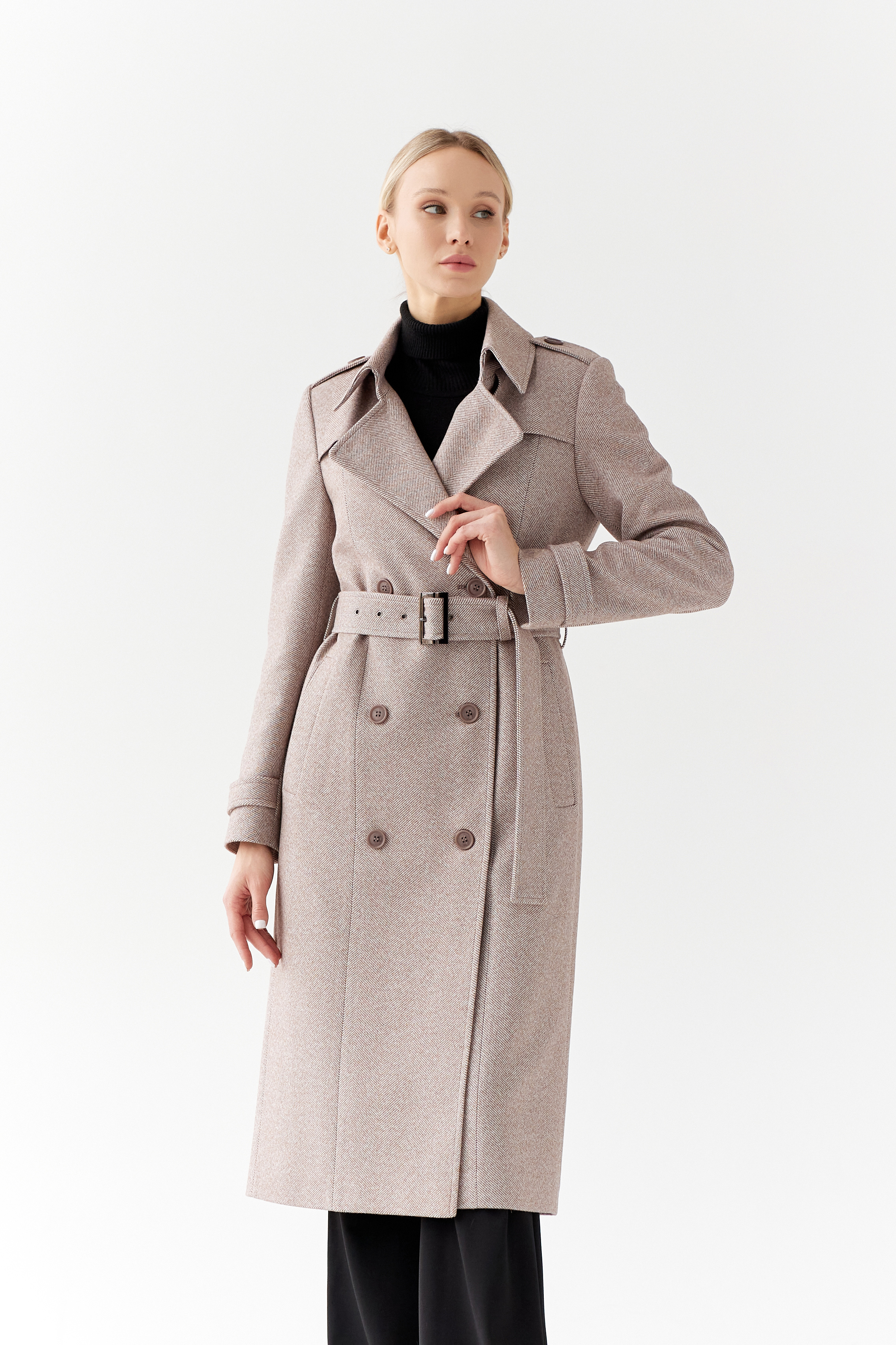 Пальто прямого силуэта, среднего объема.