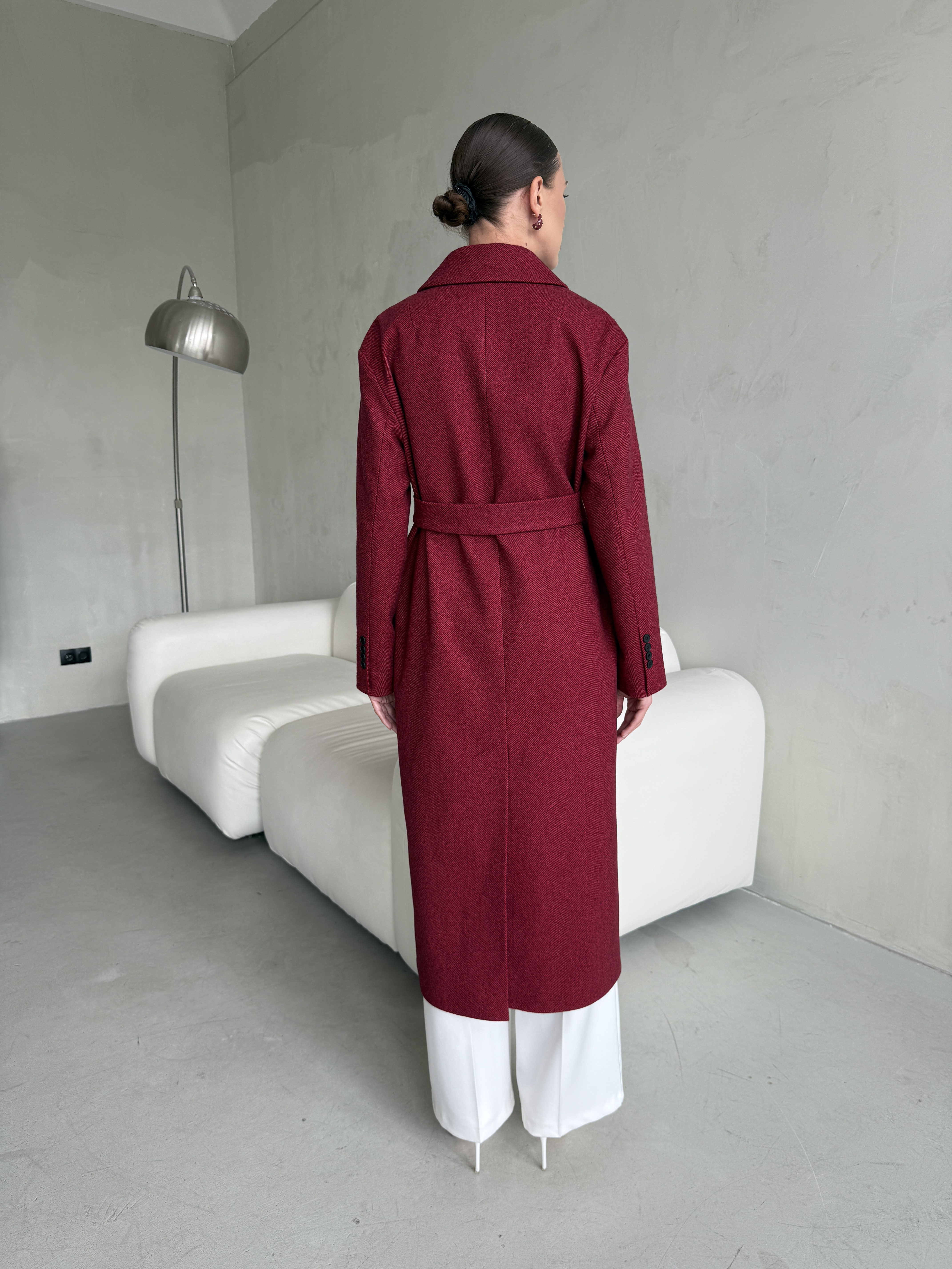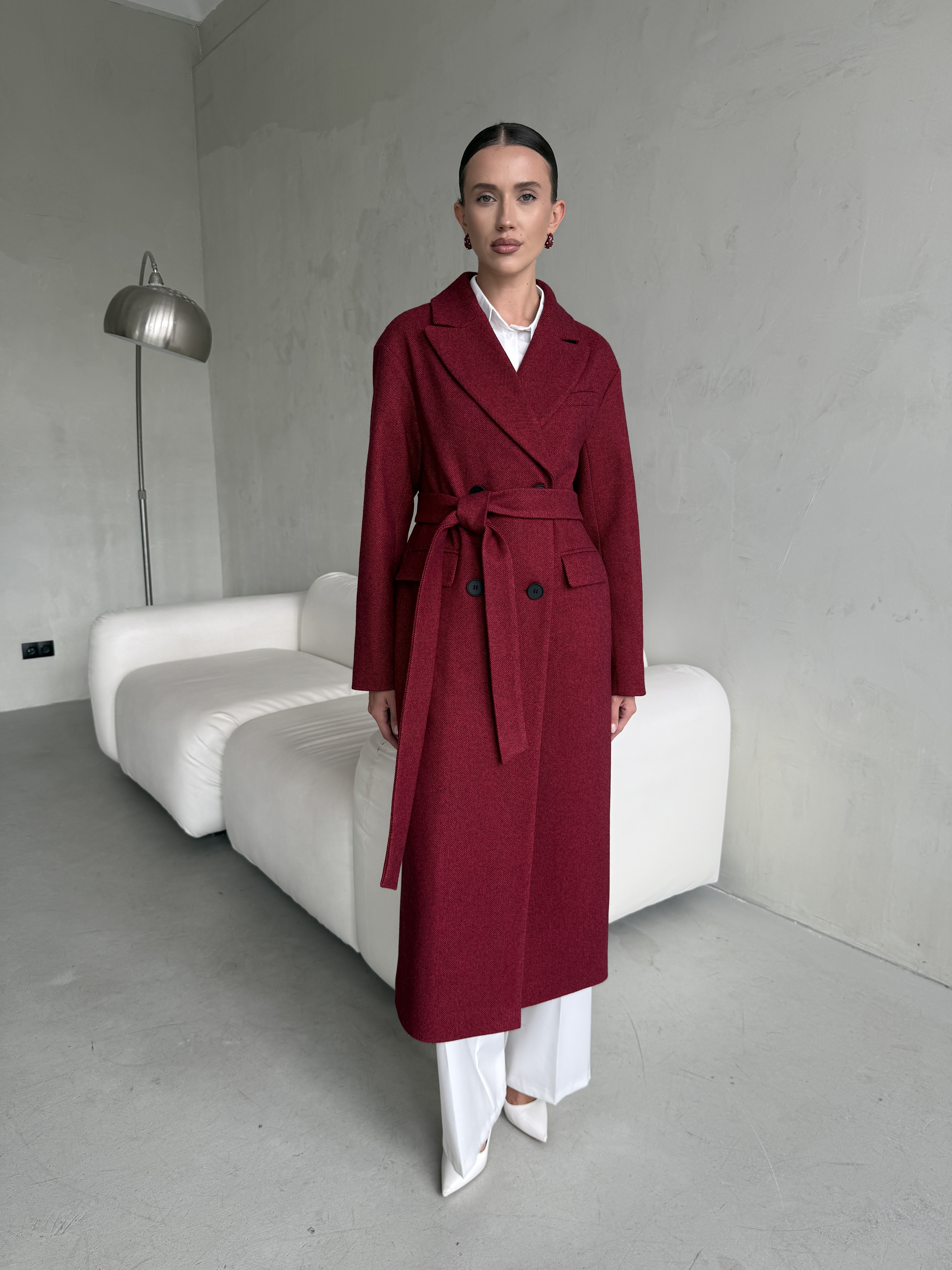 Пальто женское демисезонное 26102 (бордовый/ёлочка)