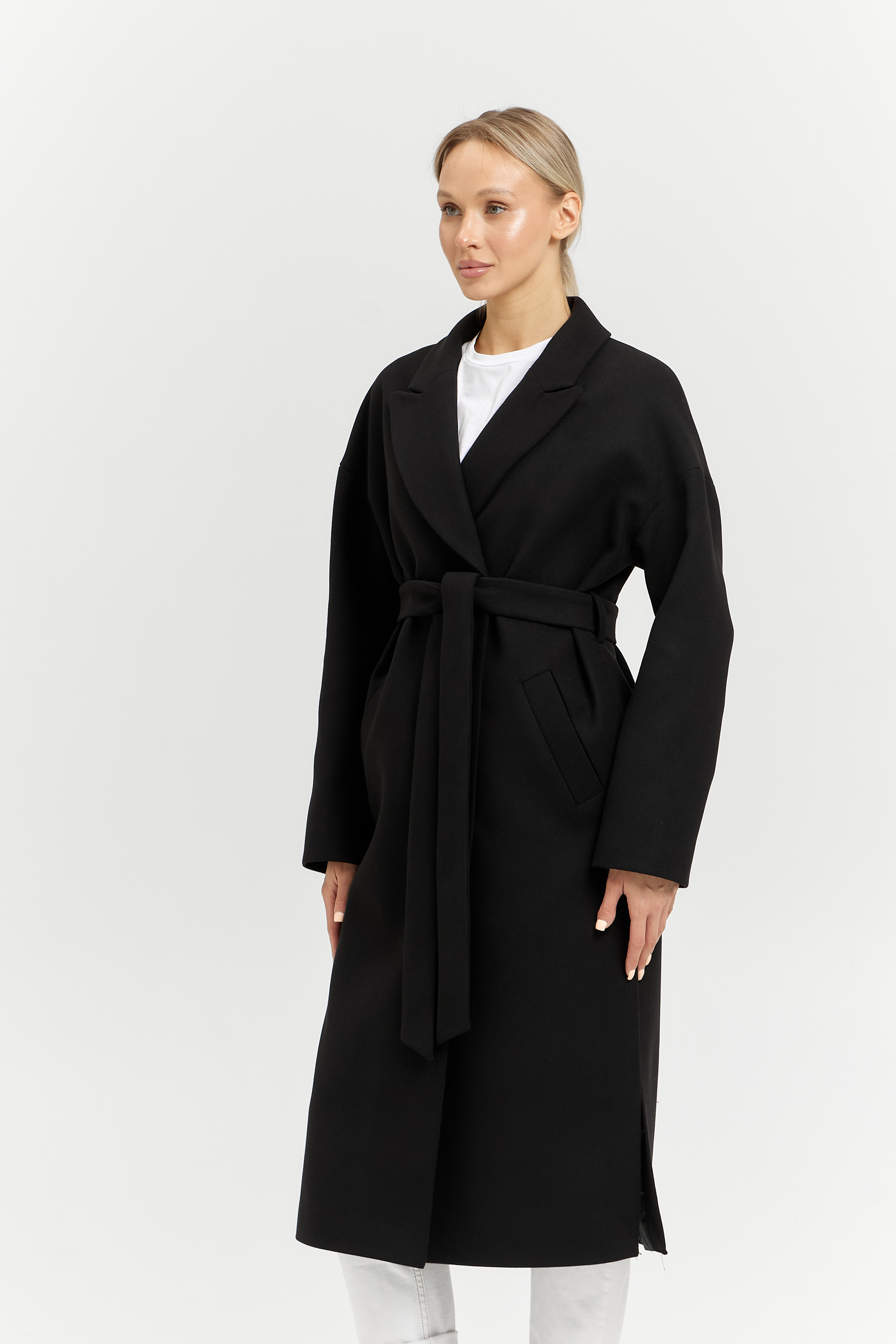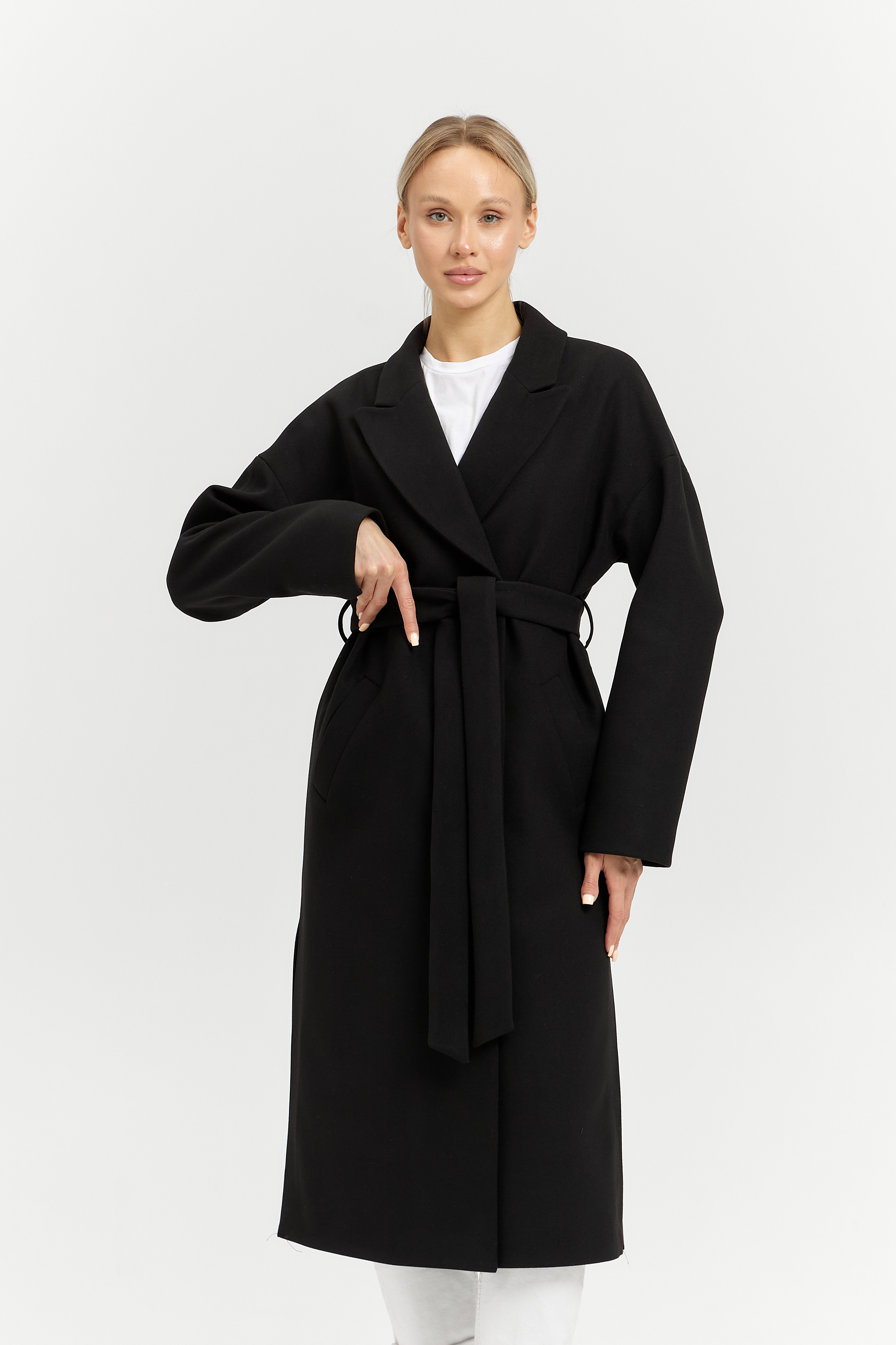 В боковых швах разрезы и шлевки под пояс.