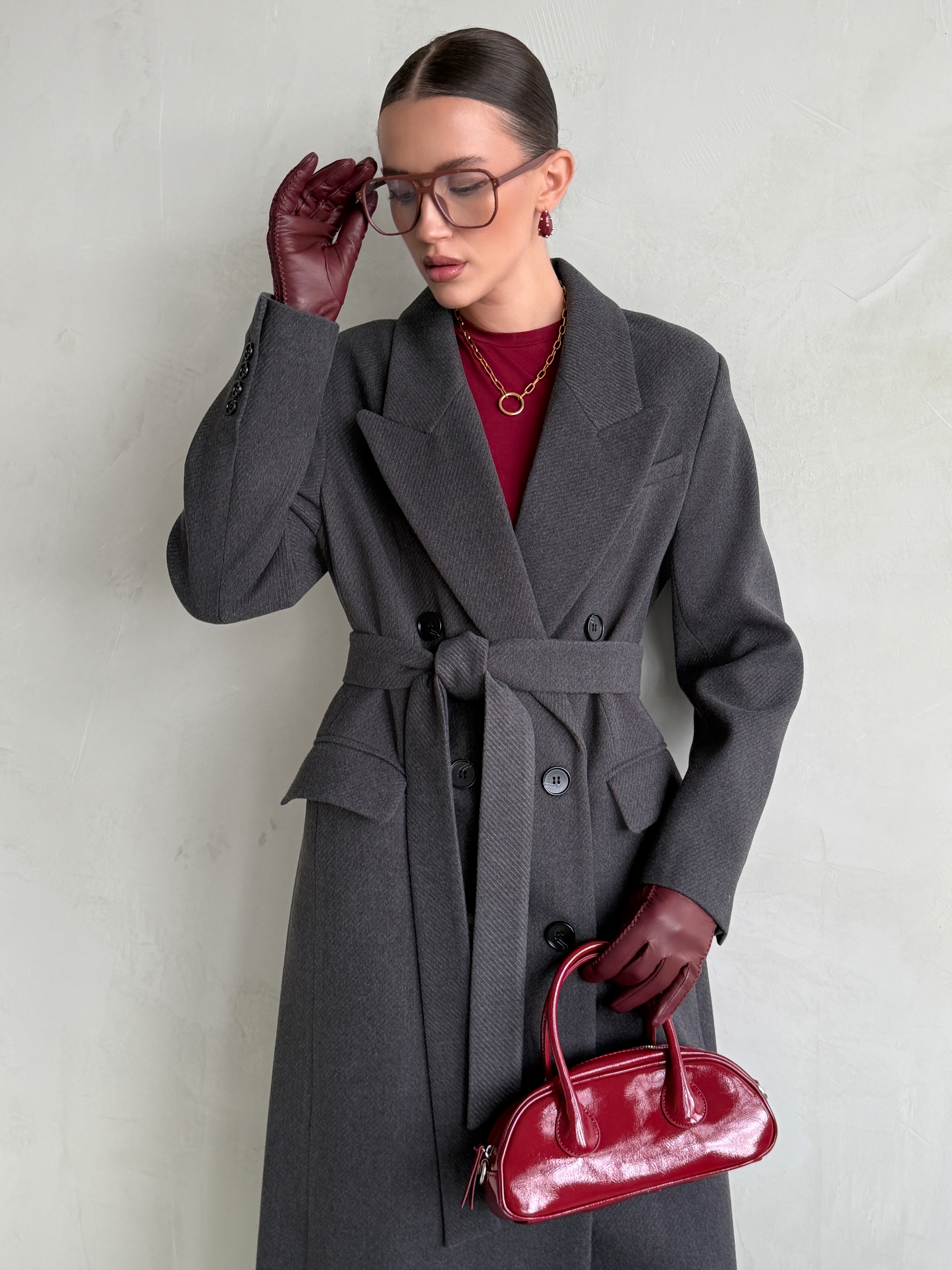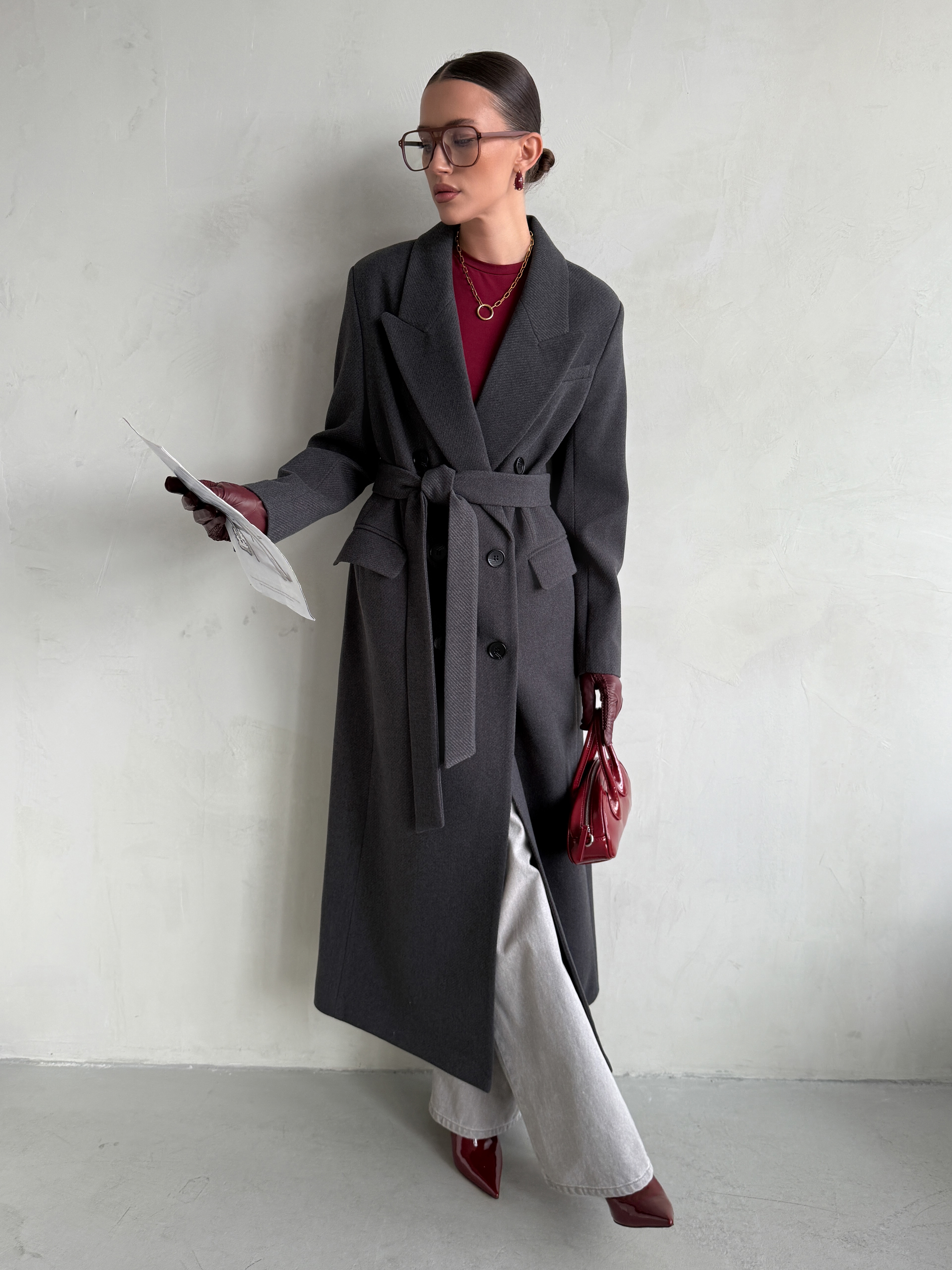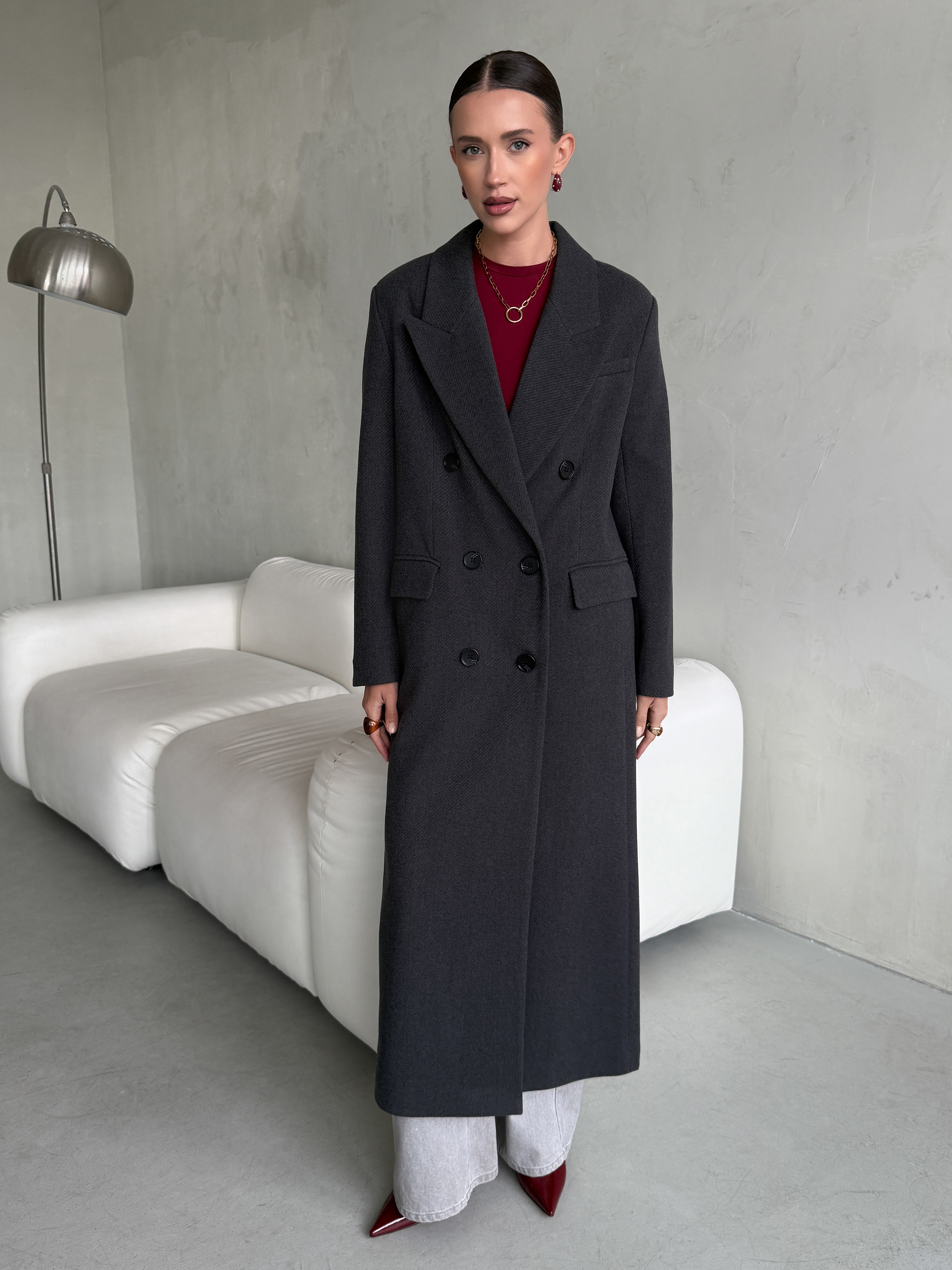 Пальто прямого силуэта с втачным рукавом.