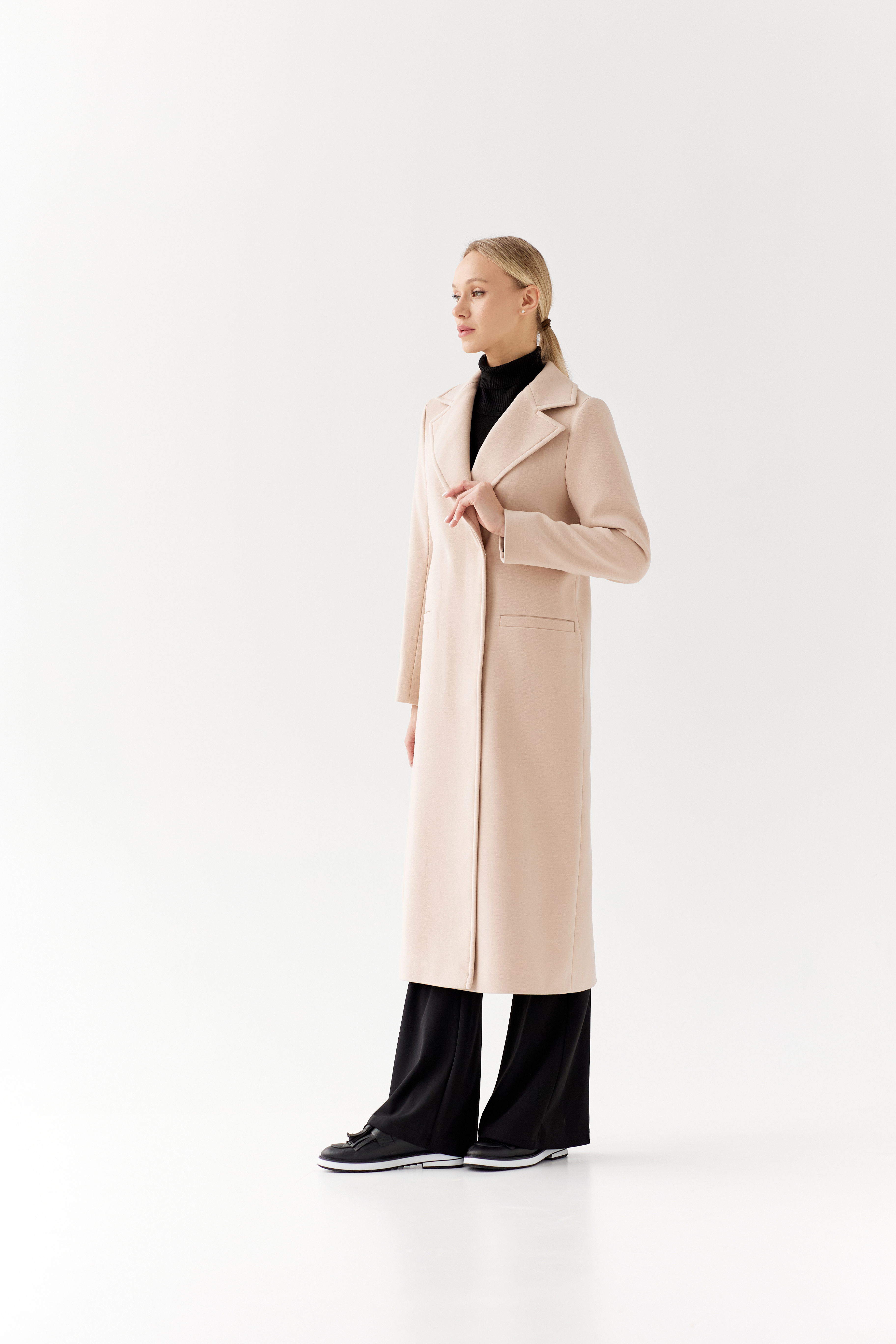 Силуэт прямой с втачным рукавом.
